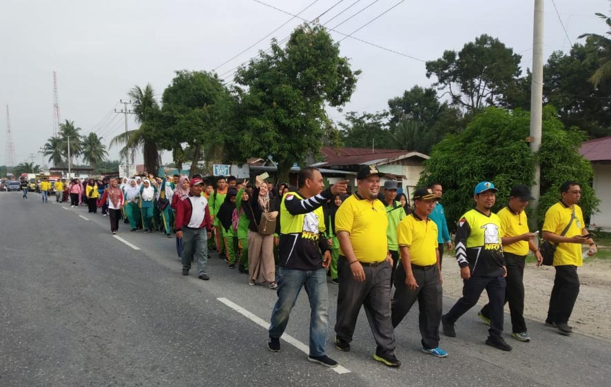Adapun ratusan peserta yang mengikuti gerak jalan santai ini, mulai dari murid tingkat Sekolah Dasar (SD) dan Sekolah Menengah pertama (SMP) dan ibu-ibu PKK serta masyarakat umum.