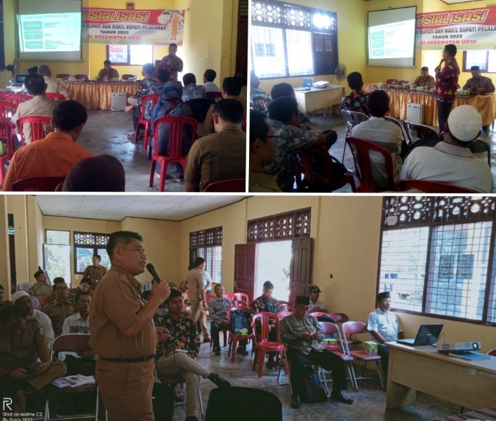 PELALAWAN, Ungkapriau.com- Badan Kesbangpol Kabupaten Pelalawan, melakukan Sosialisasi Pemilihan Kepala Daerah dan Wakil Kepala Daerah Pelalawan Tahun 2020, di Raung Aula Kantir Camat Ukui pada Selasa (17/3/2020)