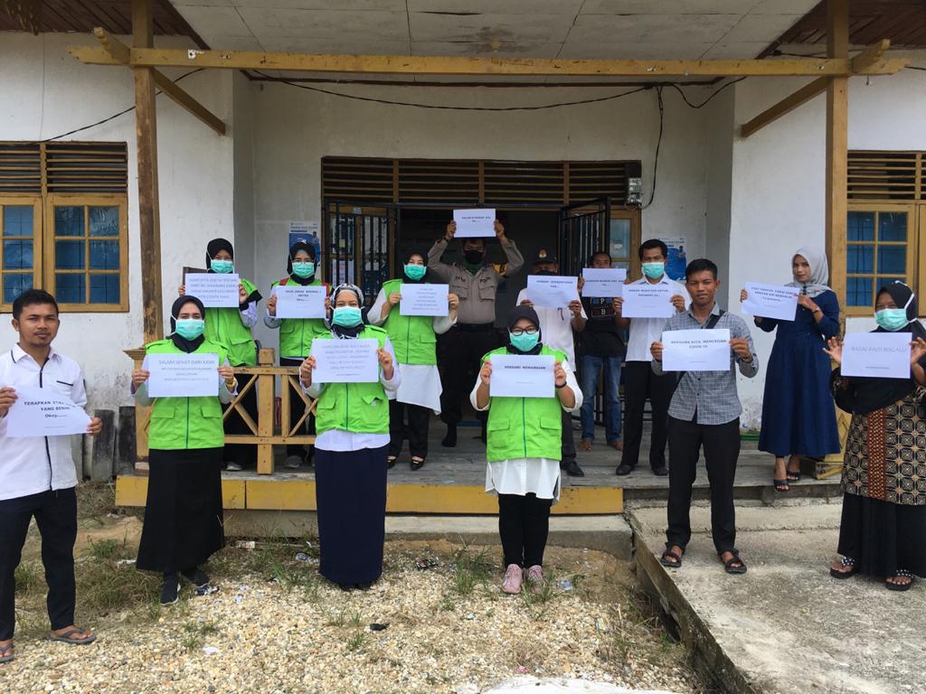 Asmawati, S.KM selaku Kepala BLUD Puskesmas Pelalawan bersama tenaga medis melakukan sosialisasi pencegahan penyebaran Virus Covid-19 kepada masyarakat Desa Kuala Tolam.