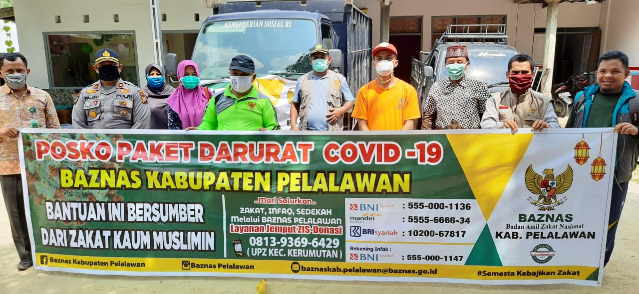 Penyerahan 100 Paket bantuan Sembako dari Baznas ini, dilakukan oleh Kepala Kementrian Agama Kabupaten Pelalawan, H.Muhammad Rais di Desa Bukit Lembah Subur melalui Unit Penerima Zakat (UPZ) Kecamatan Kerumutan, Kamis (16/04/2020).