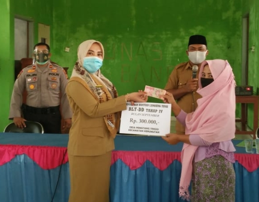 PELALAWAN UNGKAPRIAU.COM- Pemerintah Desa Pematang Tinggi, Kecamatan Kerumutan salurkan Bantuan Langsung Tunai Dana Desa (BLT- DD) periode ke dua Tahun 2020 kepada 25 keluarga penerima manfaat untuk 3 bulan. Kegiatan dilaksanakan di Gedung Pertemuan Desa Pematang Tinggi pada Selasa (29/09/2020).