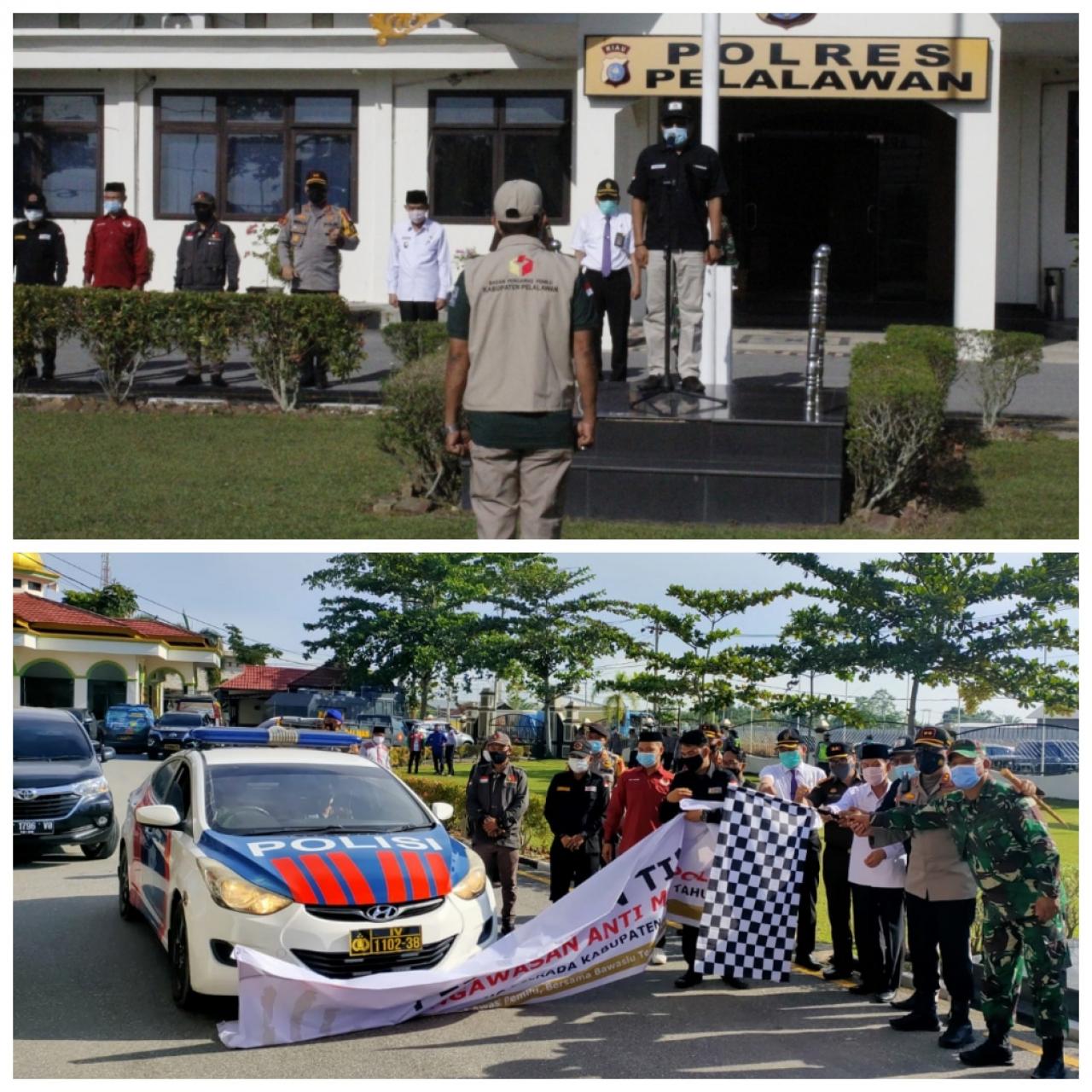 Dilanjutkan pelepasan tim patroli pengawasan anti Money Politic, kabupaten Pelalawan di pemilihan Bupati dan Wakil Bupati Pelalawan, oleh Wakil Bupati Pelalawan, bersama Ketua Bawaslu dan Kapolres Pelalawan.