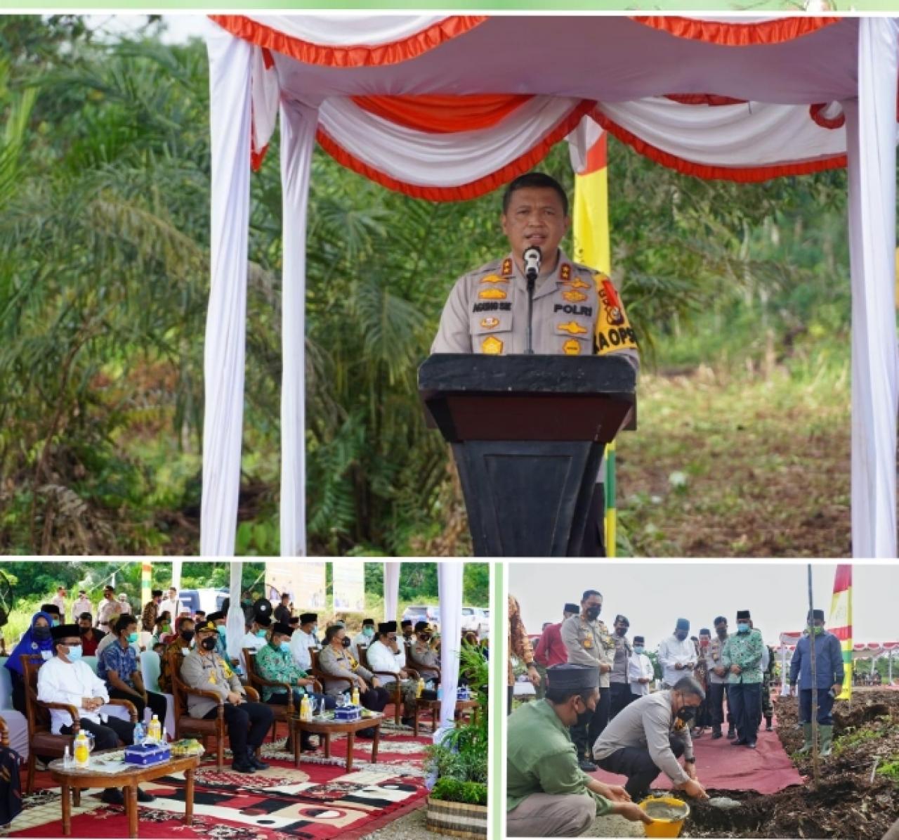 SIAK (Ungkapriau.com)- Kapolda Riau Irjen Pol Agung Setya Imam Efendi, SH, SIk, Msi bersama Bupati Siak Drs. H. Alfedri, Msi, melakukan peletekan Batu Pertama pembangunan Pondok Pesantren Hamalatul Quran Kwalian Kelurahan Kampung Rempak Kecamatan Siak, Kabupaten Siak, Minggu Pagi (27/12/2020).