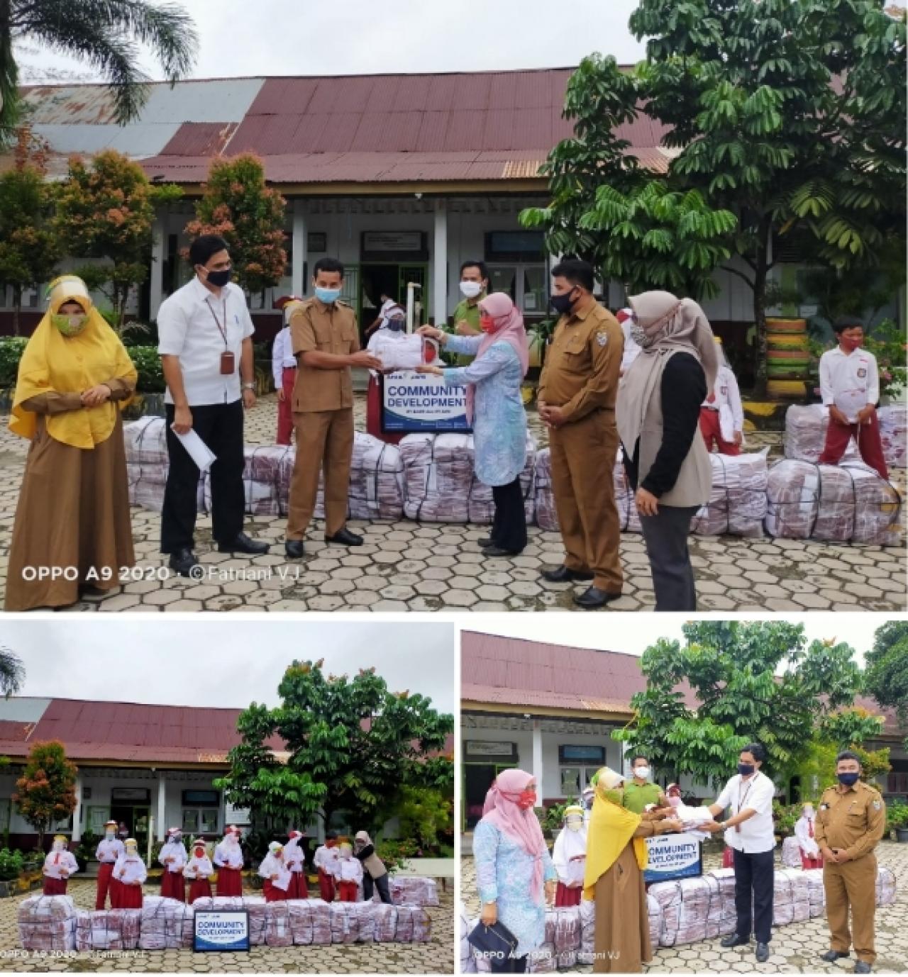 PELALAWAN (Ungkapriau.com)- PT. RAPP melalui APRIL dan APR menyerahkan bantuan seragam sekolah untuk anak anak Sekolah Dasar (SDN) berbahan rayon yang merupakan hasil produksi PT. APR.