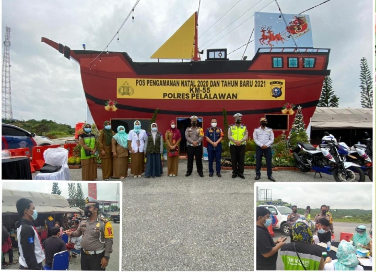 PELALAWAN (Ungkapriau.com)- Upaya menekan angka penyebaran Covid-19 di wilayah hukum Polres Pelalawan. Satuan Polisi Lalu Lintas (Satlantas) Polres Pelalawan, melaksanakan pemeriksaan kesehatan terhadap pengemudi dan penumpang angkutan umum yang sedang melaksanakan perjalanan mudik Natal dan Tahun baru (Nalub) 2020/2021.