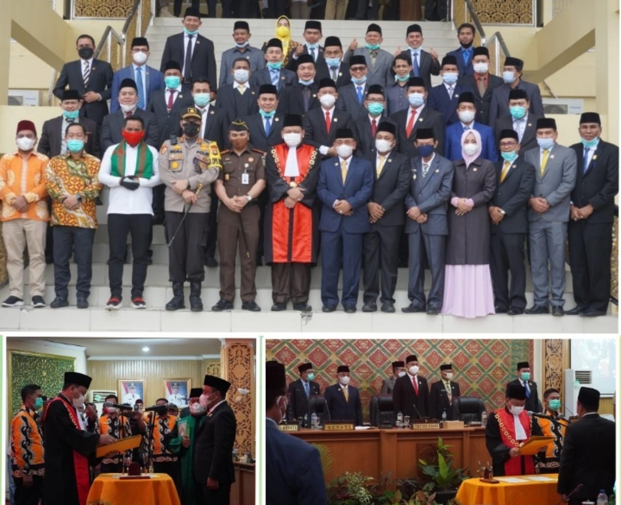 PELALAWAN (Ungkapriau.com)- Lembaga Dewan Perwakilan Rakyat Daerah (DPRD) Kabupaten Pelalawan, menggelar Rapat Paripurna peresmian dan pengangkatan sumpah janji Baharuddin,SH dari Partai Golongan Karya (Golkar) Pengganti Antar Waktu (PAW) Ketua DPRD Pelalawan Sisa Masa Jabatan 2019 - 2024 di Gedung Parlemen Pelalawan, Senin (1/2/2021).
