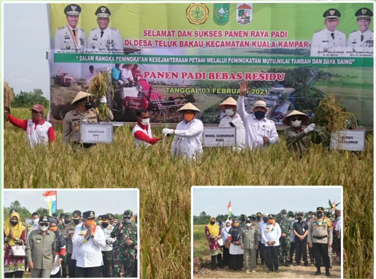 PELALAWAN (Ungkapriau.com)- Wakil Gubernur Riau H.Edy Natar Nasution, S.Ip, menghadiri langsung panen raya padi bebas rasidu di Desa Teluk Bakau, Kecamatan Kuala Kampar Kabupaten Pelalawan. Rabu (03/02/2021).