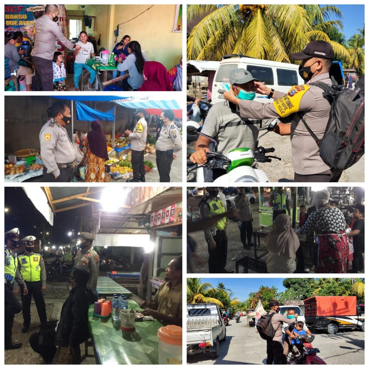 Para personel Kepolisian ini memberikan himbauan kepada masyarakat tentang pentingnya menerapkan protokol kesehatan dengan menjalankan 5-M, yaitu Memakai Masker, Mencuci Tangan, Menjaga Jarak, Menghindari Kerumunan dan Mengurangi aktivitas keluar rumah.