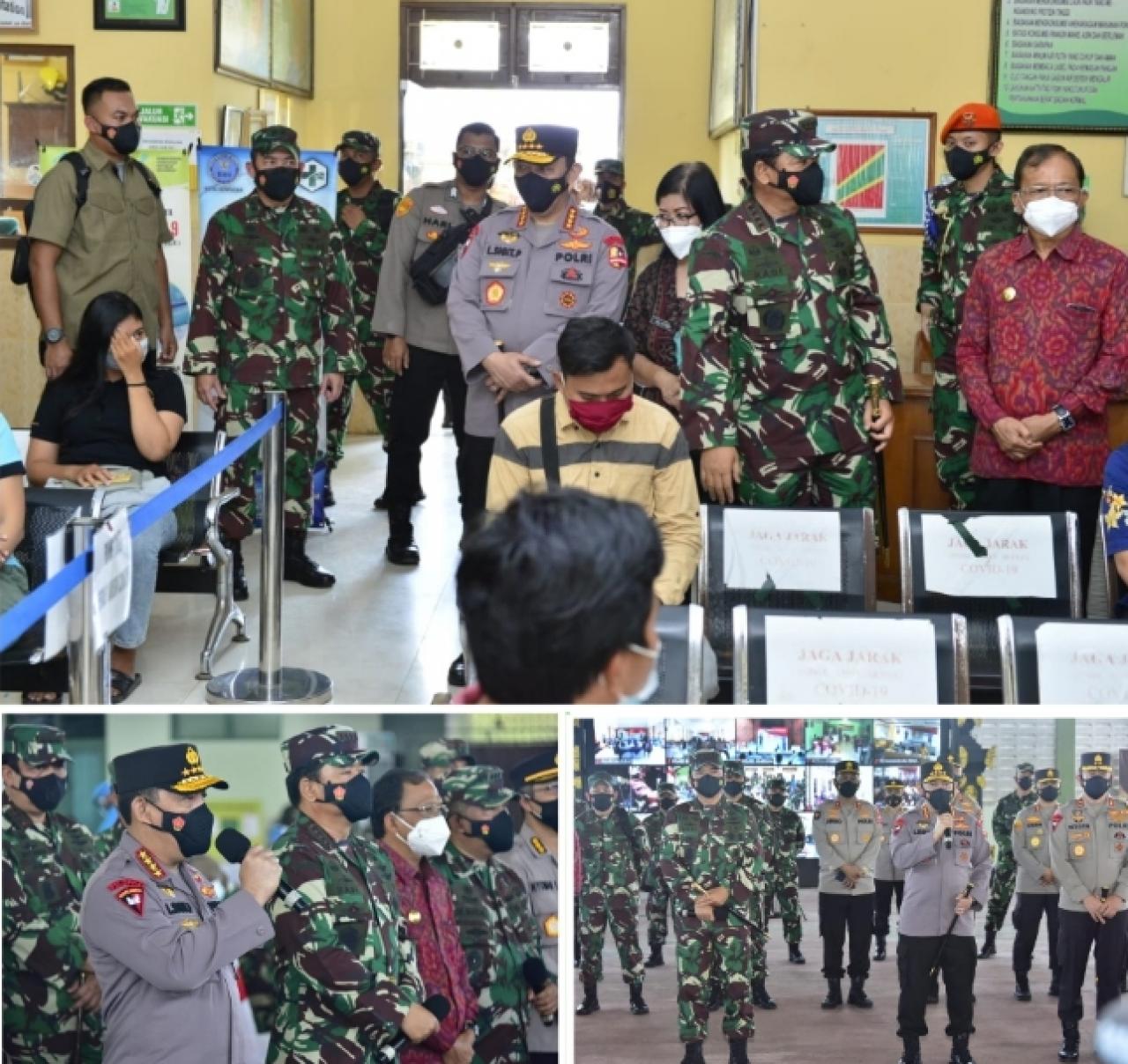 DENPASAR, Ungkapriau.com- Panglima TNI Marsekal Hadi Tjahjanto bersama Kapolri Jenderal Listyo Sigit Prabowo meninjau secara langsung pelaksanaan vaksinasi COVID-19 anggota TNI-Polri di Gedung Olahraga Praja Kepawon Kodam Udayana Bali, Jumat (19/3/2021).