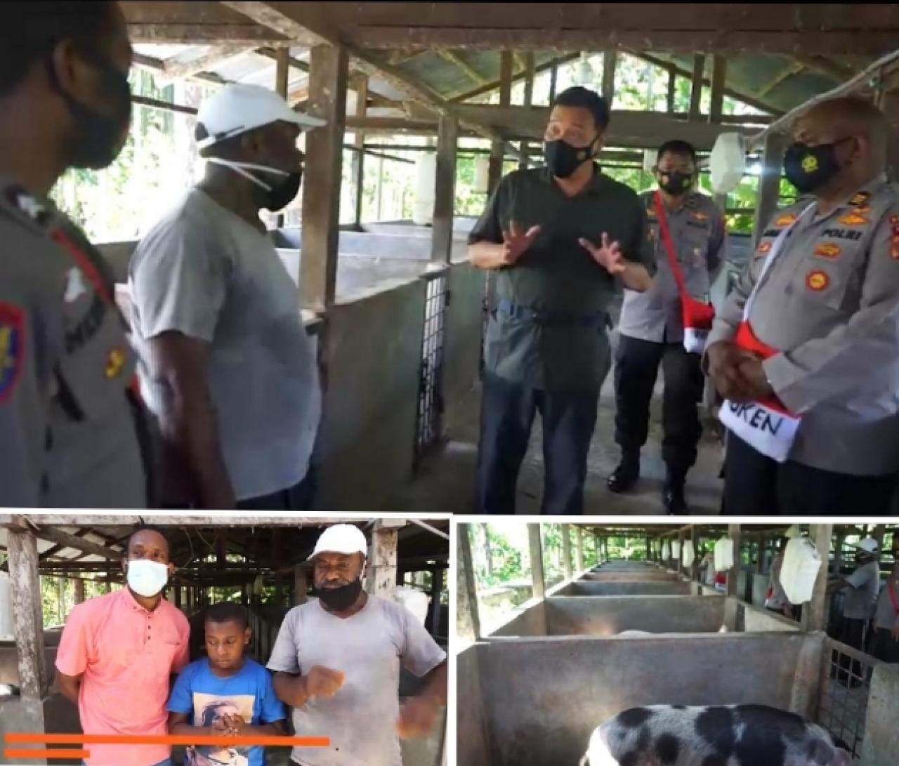 “Kegiatan kunjungan ke peternakan Binaan Binmas Noken Polri yang bertempat di Kyamki Narama Kab. Mimika Papua dimana bapak Lenius merupakan salah satu binaan Binmas Noken Polri, ayo kita lihat bersama,” ungkap AKBP Arief.