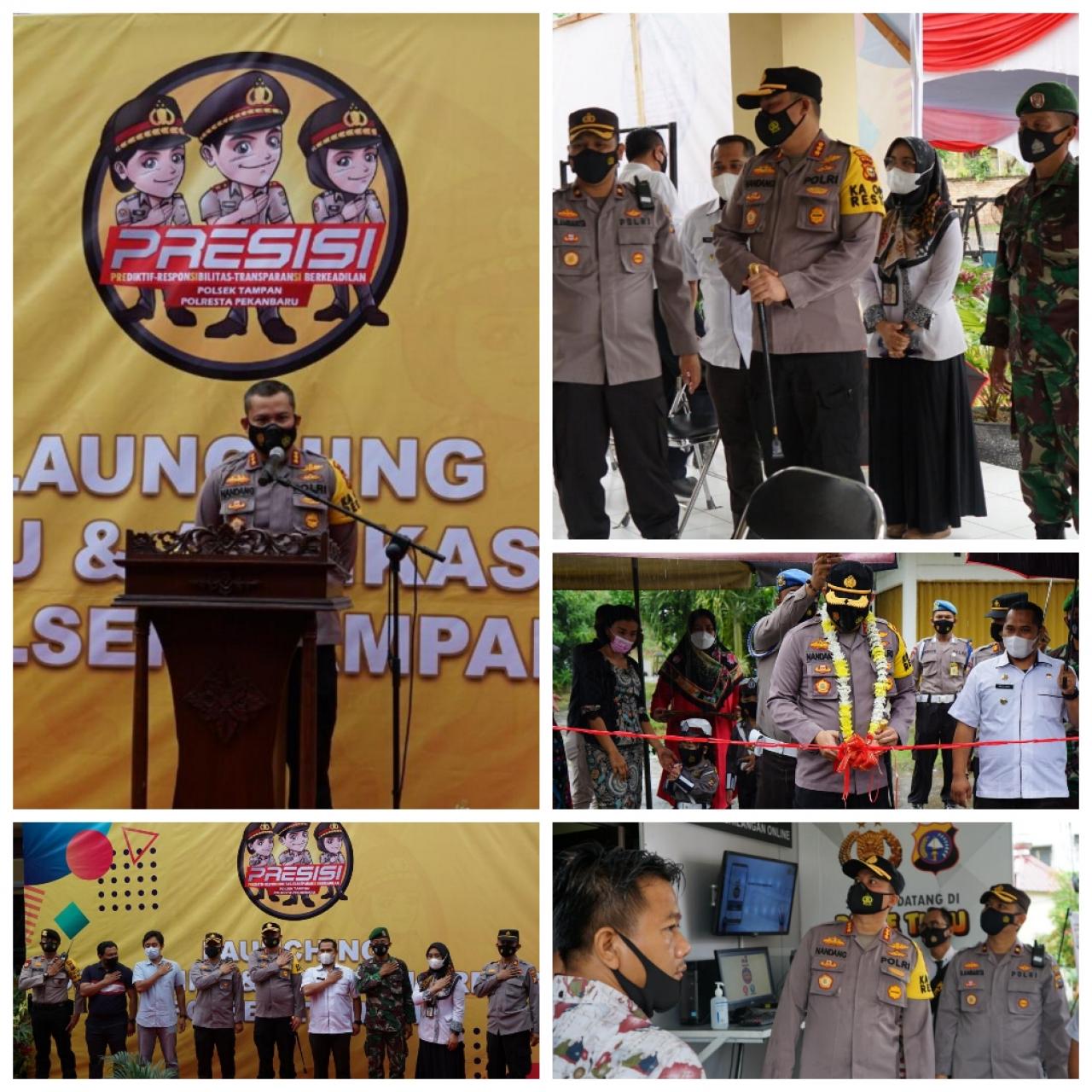 “Pada hari ini rabu tanggal 24 maret 2021, saya resmikan launching skck & laporan kehilangan barang (LKB) drive thru melalaui aplikasi Presisi Polsek Tampan, dimana inovasi yang dilakukan oleh Polsek Tampan semoga dapat menjadi contoh bagi Polsek lainya, dimana saya menilai inovasi yang dilakukan polsek tampan sesuai dengan progaram 100 hari kerja kapolri dan mendukung protokol kesehatan yang di galak oleh pemerintah saat ini,” Kata Kapolresta Pekanbaru Kombes Pol H. Nandang Mu’min Wijaya ,S.I.K. ,M.H saat melaunching drive thru skck & laporan kehilangan barang (LKB) Polsek Tampan, yang berlokasi di Mapolsek Tampan Kecamatan Binawidya, Rabu (24/3/2021).