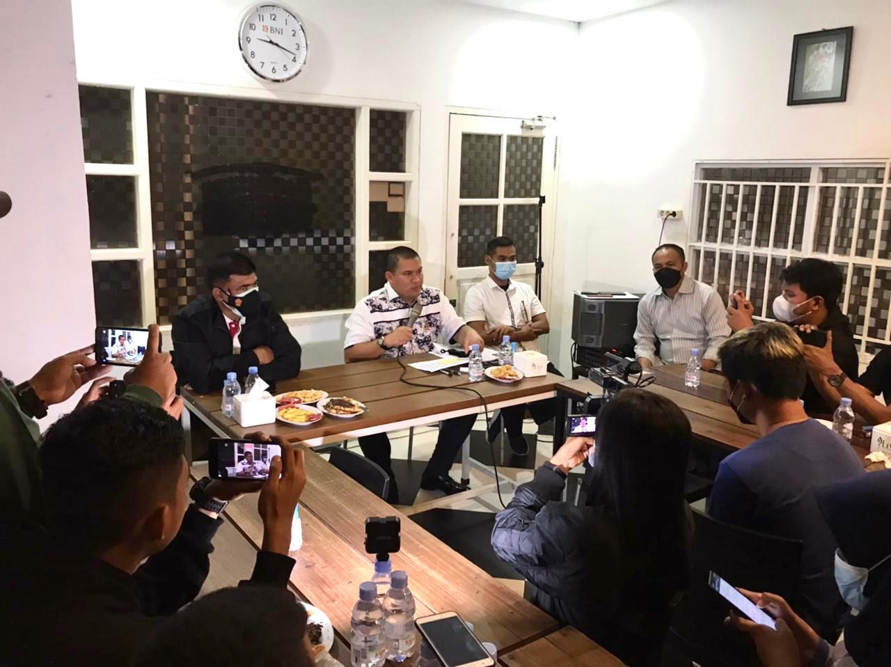 PEKANBARU, Ungkapriau.com- Direktur Reserse Kriminal Umum Polda Riau Kombes Pol Teddy Ristiawan SIK, MH didampingi Kabid Humas Kombes Pol Sunarto SIK, saat menggelar konferensi pers di sebuah kafe di jalan Sumatera Pekanbaru pada Rabu (25/3/2021), menegaskan bahwa pihaknya sangat komit dalam memproses dan menuntaskan kasus dugaan tindak pidana Pemalsuan Surat dan atau Penggelapan Hak Atas Tanah di Desa Pangkalan Gondai Kecamatan Langgam Kabupaten Pelalawan, dengan terlapor pengurus koperasi Gondai Raya dan pengurus koperasi Sri Gumala Sakti.