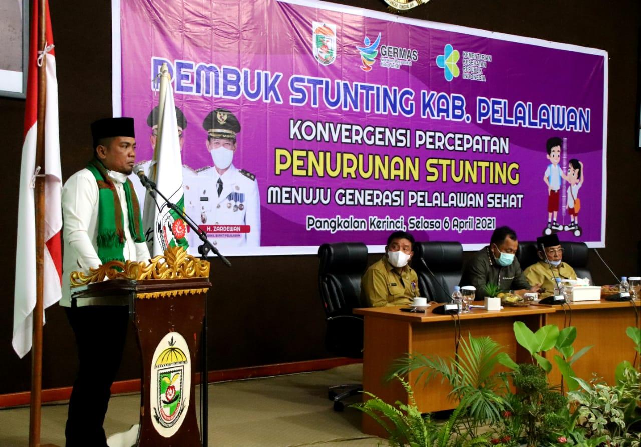 PELALAWAN, Ungkapriau.com- Bupati Pelalawan yang akan di lantik pada tanggal 26 April 2021 ini H.Zukri Misran punya strategi dalam penurunan stunting yang ada di Kabupaten Pelalawan. Hal ini disampaikan oleh mantan Wakil Ketua DPRD Propinsi Riau ini saat memberikan kata sambutan di hadapan para peserta pimpinan OPD dan perusahaan saat menghadiri kegiatan rembuk stunting tingkat Kabupaten Pelalawan konvergensi dalam percepatan penurunan stunting menuju pelalawan sehat yang di laksanakan oleh Dinas Kesehatan Kabupaten Pelalawan berlangsung di Auditorium Kantor Bupati Lantai III Pangkalan Kerinci. Selasa (06/04/2021).