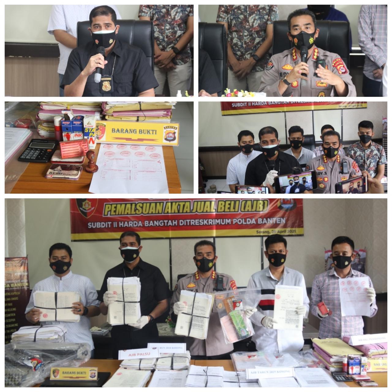 Ditempat yang sama, Kasubdit II Harda Bangtah Ditreskrimum Polda Banten AKBP Dedy Darmawansyah menjelaskan bahwa barang bukti berupa Akta Jual Beli dan Akta Hibah yang dipalsukan tersangka sebanyak 690 akta.