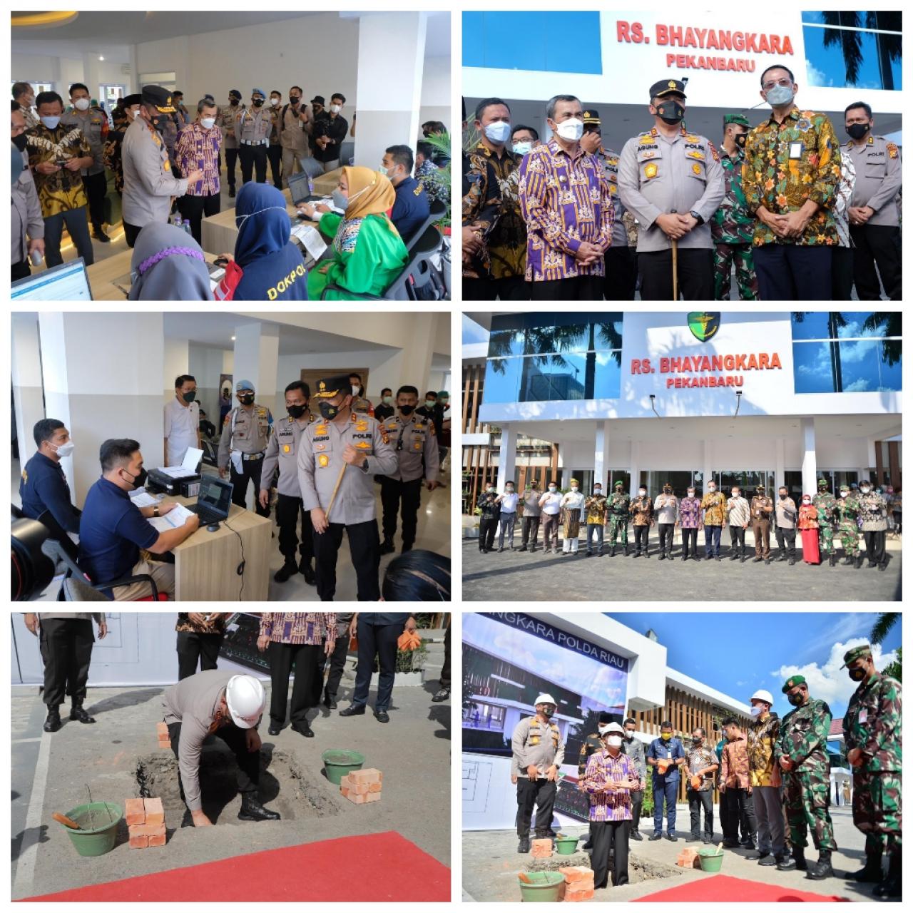 Gubernur Syamsuar atas nama pemerintah provinsi Riau menyampaikan apresiasi dan penghargaan kepada Polda Riau yang dinilai sangat peduli dengan membangun dan mengoperasionalkan Vaksin Center RS Bhayangkara.