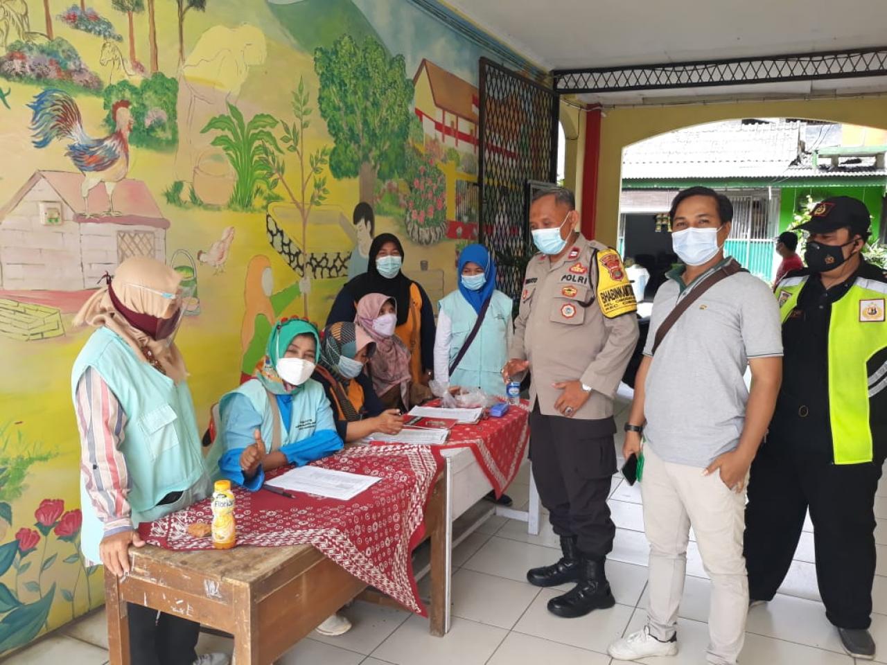 BANTEN, Ungkapriau.com- Guna mencegah lonjakan Virus Covid-19, Anggota personel Polsek Jatiuwung Polrestro Tangerang, Aiptu H. Suwarto bersama Lurah Cibodas Baru H.M Rojani, S.sos, pantau kegiatan pelaksanaan Vaksinasi massal, Rabu (23/06/2021) jam 07:00wib.