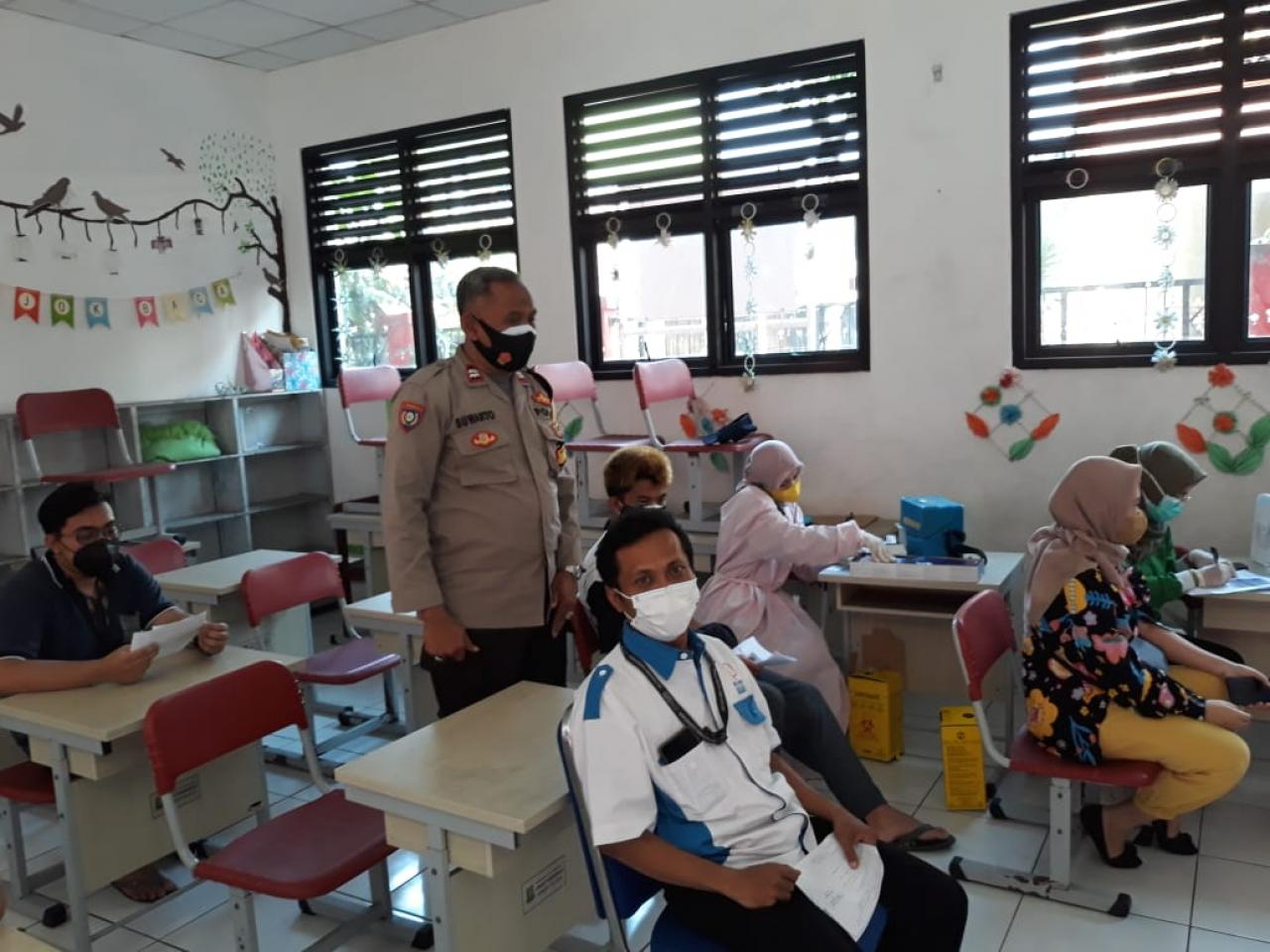 BANTEN, Ungkapriau.com- Dalam mendukung Vaksinasi massal program pemerintah pusat, anggota personel Polsek Jatiuwung lakukan pemantauan serta pengamanan jalannya pelaksanaan kegiatan, Selasa (29/06/2021) jam 07:00wib.
