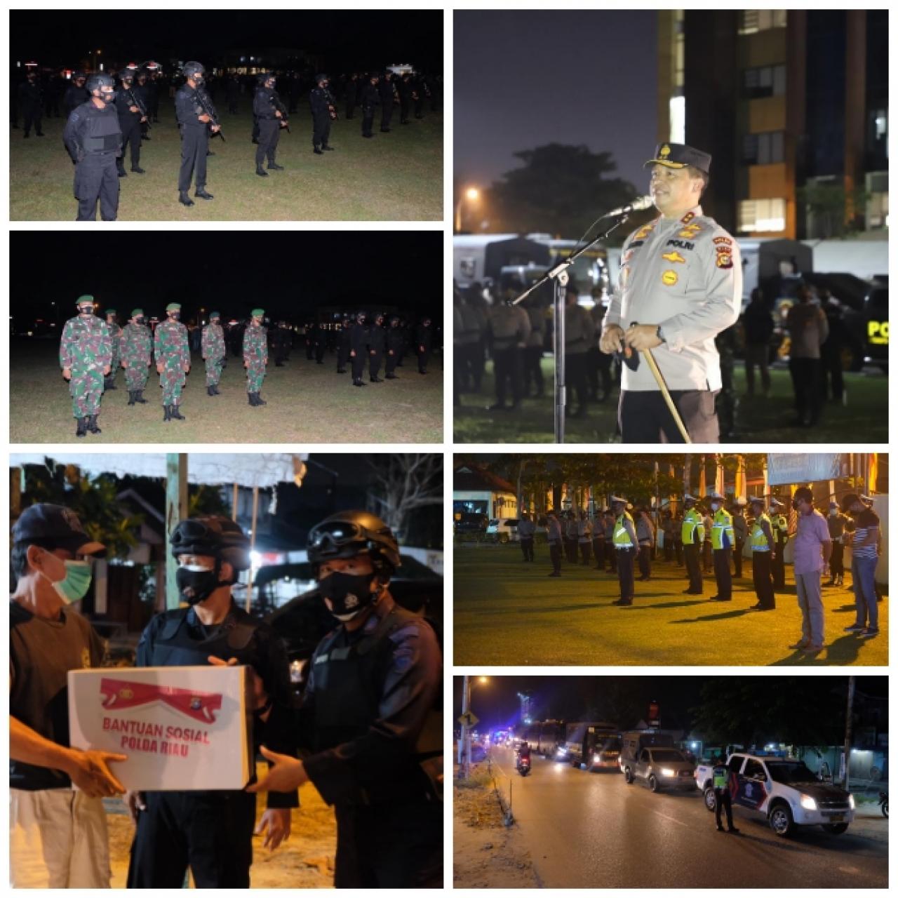 Patroli berskala besar yang dipimpin langsung oleh Kapolda Riau ini dan Ribuan personil Polda Riau dan Polres Jajaran turun ke Jalan bersama TNI dalam menghimbau Protkes sekaligus membagikan bantuan sosial berupa paket sembako.