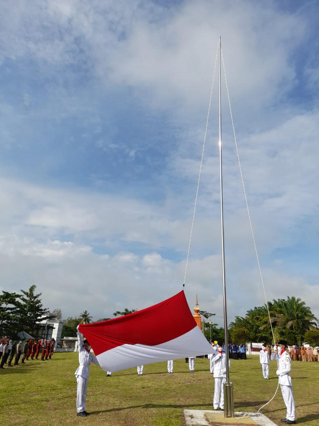Pelalawan, ungkapriau.com- Dalam rangka memperingati Hari Ulang Tahun (HUT) Kemerdekaan Republik Indonesia (RI) Ke-76, Pemerintah Kecamatan Bunut gelar Upacara Pengibaran Bendera Merah Putih di lapangan Astaka Kecamatan Bunut pada Selasa, 17 Agustus 2021.