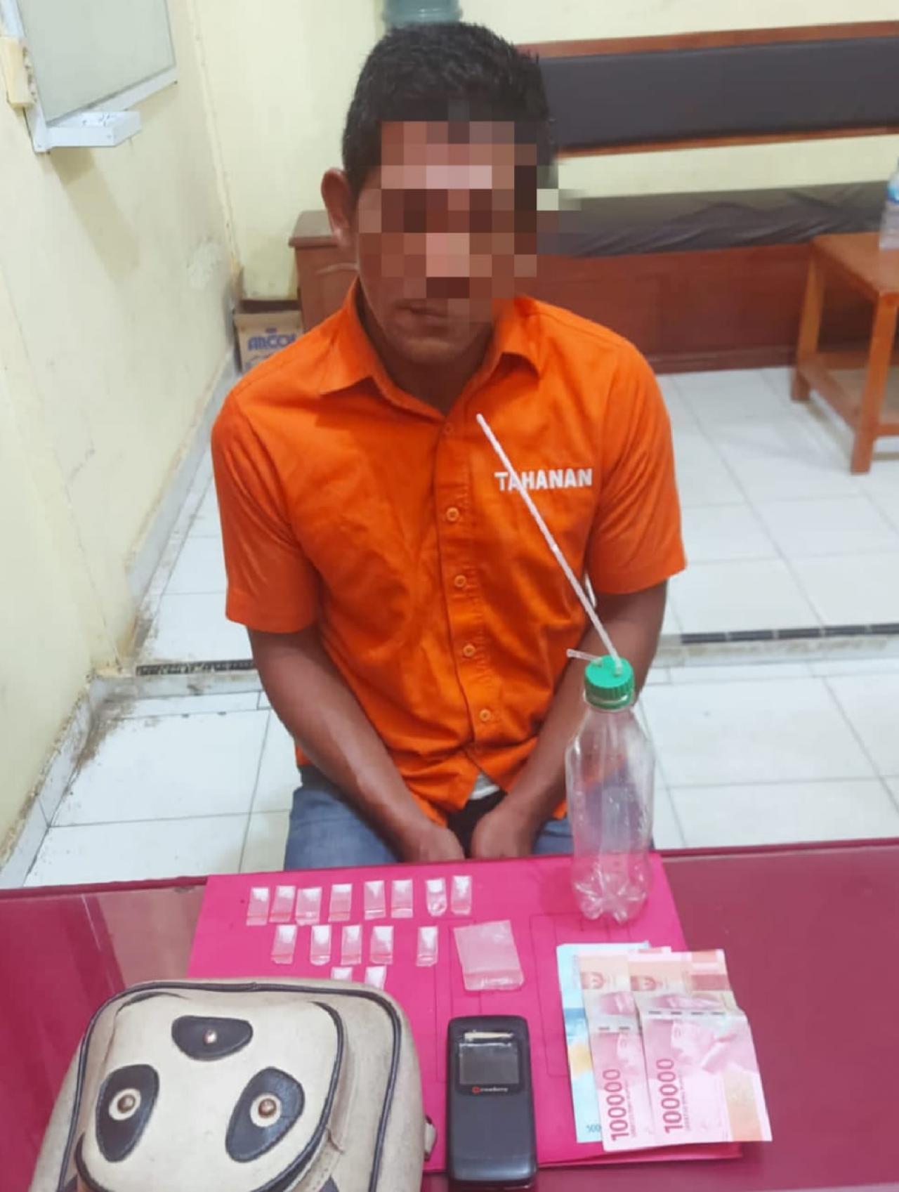 Dari pelaku ditemukan barang bukti 15 paket kecil narkotika jenis shabu terbungkus plastik bening, sebuah tas sandang, 1 set bong sebagai alat hisap shabu dan sejumlah barang bukti lainnya terkait kasus ini.