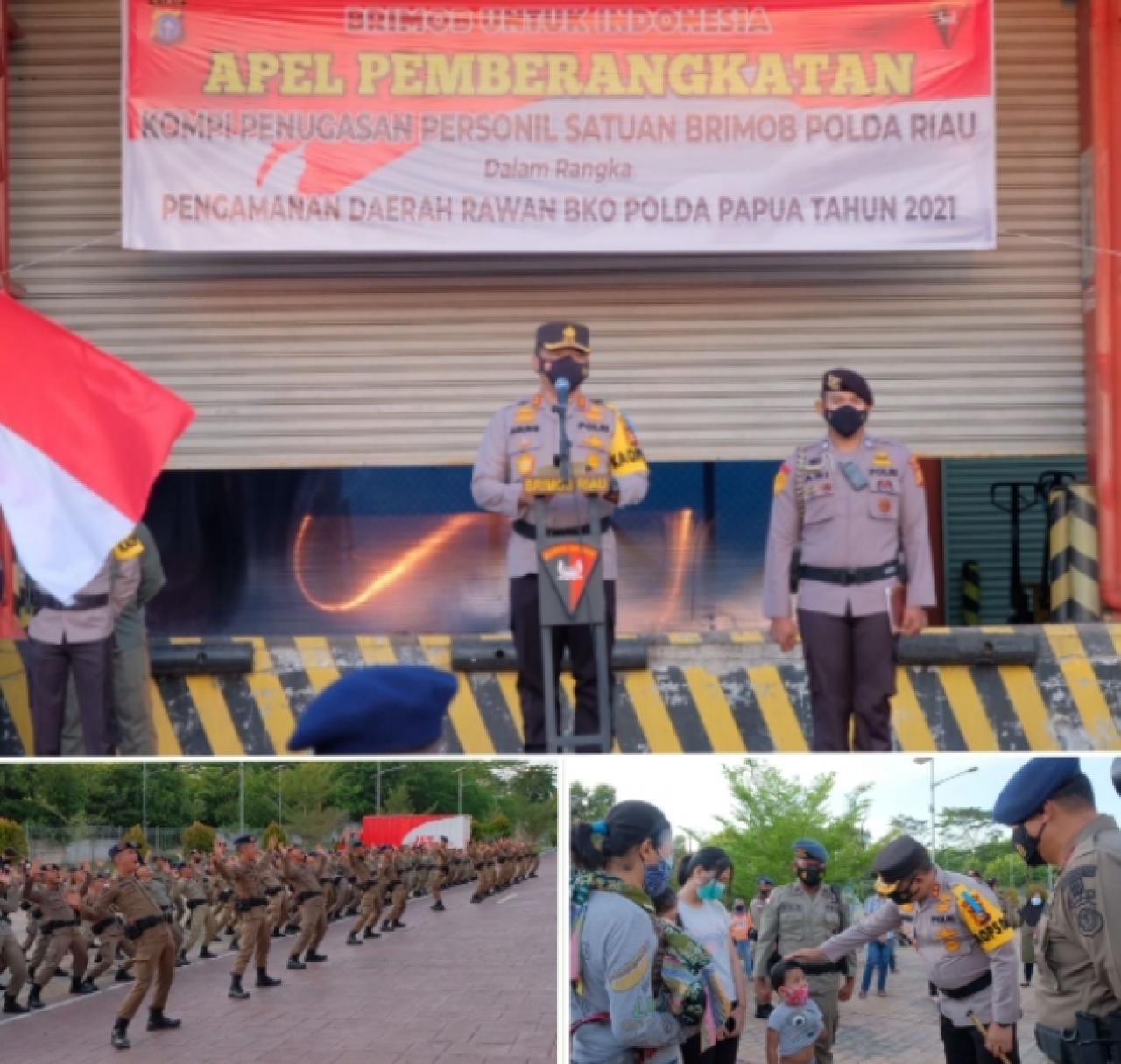 Satu kompi prajurit Satbrimobda Polda Riau ini dilepas keberangkatannya melalui terminal Bandara Sultan Syarif Kasim (SSK) II, Kota Pekanbaru. 100 personel Brimob Riau berkemampuan khusus dengan persiapan yang matang dan kelengkapan peralatan pendukungnya tersebut di berangkatkan untuk membantu meningkatkan keamanan dan kondusifitas di daerah Timika Papua. Mereka nantinya akan bergabung dengan personel lainnya yang bertugas dalam Satgas pengamanan.