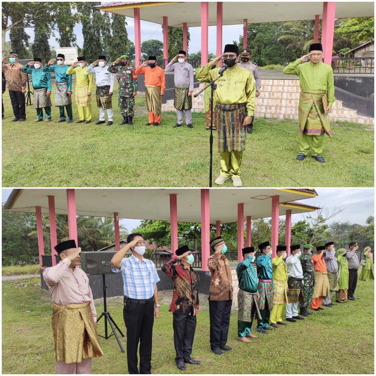 Pelalawan (ungkapriau.com) - Camat Bandar Petalangan Mukhtarius, M.Pd pimpin upacara Hari Jadi Kabupaten Pelalawan Ke-22 Tahun 2021 tingkat Kecamatan Bandar Petalangan, bertempat di lapangan depan Tribun Batin Bunut Muhammad Sidik pada Selasa (12/10/2021).