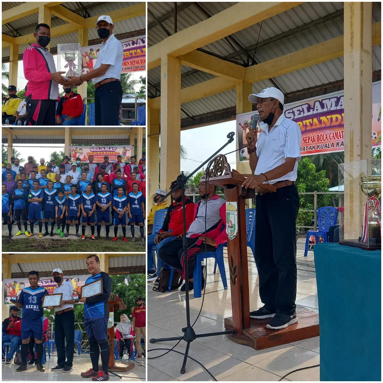 Pelalawan (ungkapriau.com) - Plt Camat Kuala Kampar T. Fauzar secara resmi membuka Turnamen Sepakbola Camat Cup Tahun 2021 di Lapangan Dwi Kora kelurahan Teluk Dalam pada Sabtu (16/10/2021).