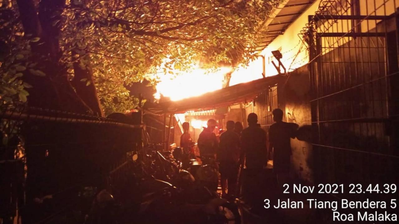 Jakarta, Kebakaran yang terjadi di jalan kopi kel roa malaka tambora Jakarta Barat pada Selasa selasa (2/11) sekira pukul 23. 40 wib