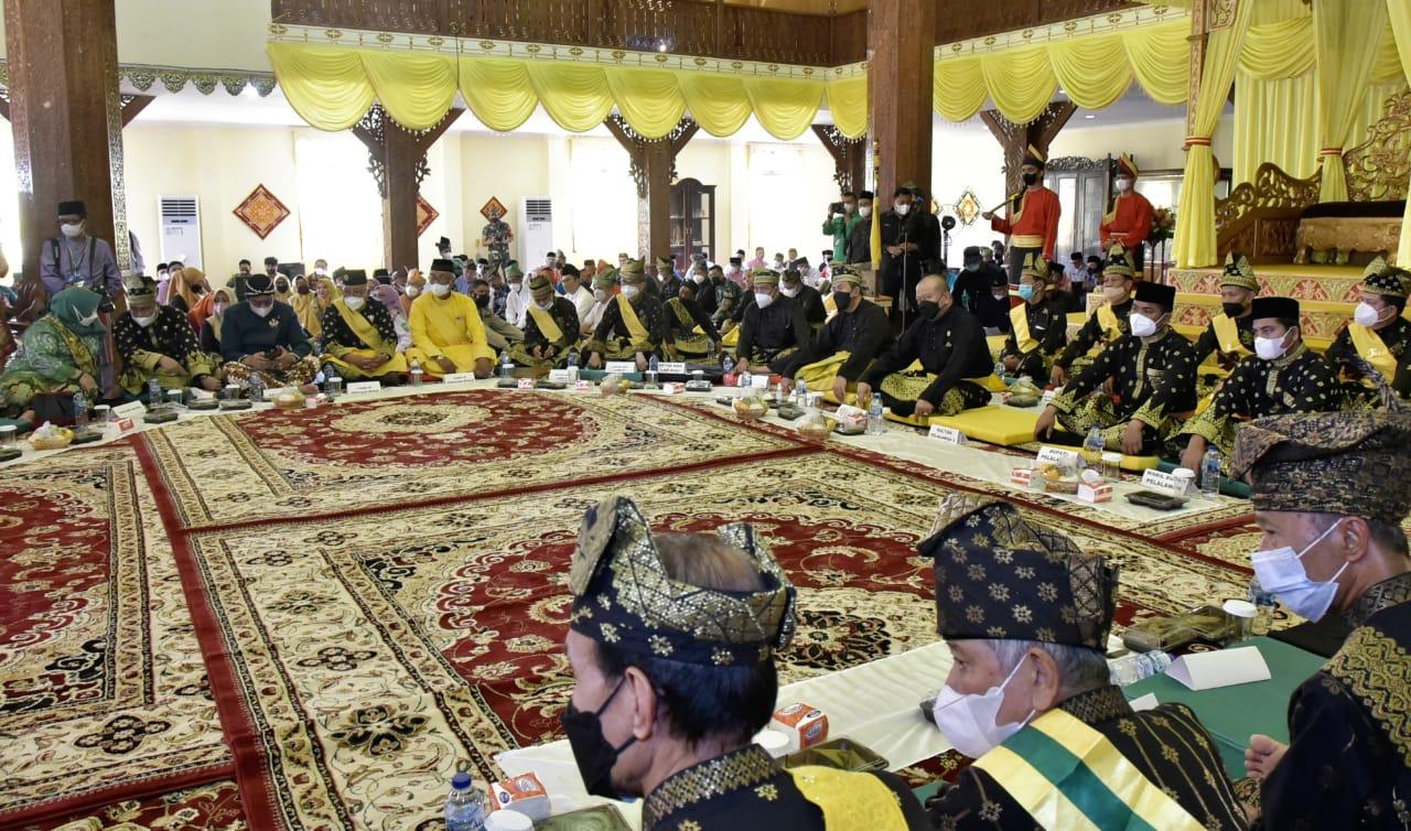 Pelalawan, ungkapriau.com- Ketua DPD RI AA LaNyalla Mahmud Mattalitti menerima penganugerahan Gelar Kekerabatan Datuk Sri Wira Utama Diraja dari Kesultanan Pelalawan bertempat di Istana Sayap, Kabupaten Pelalawan, Riau, Kamis. (09/12/2021).