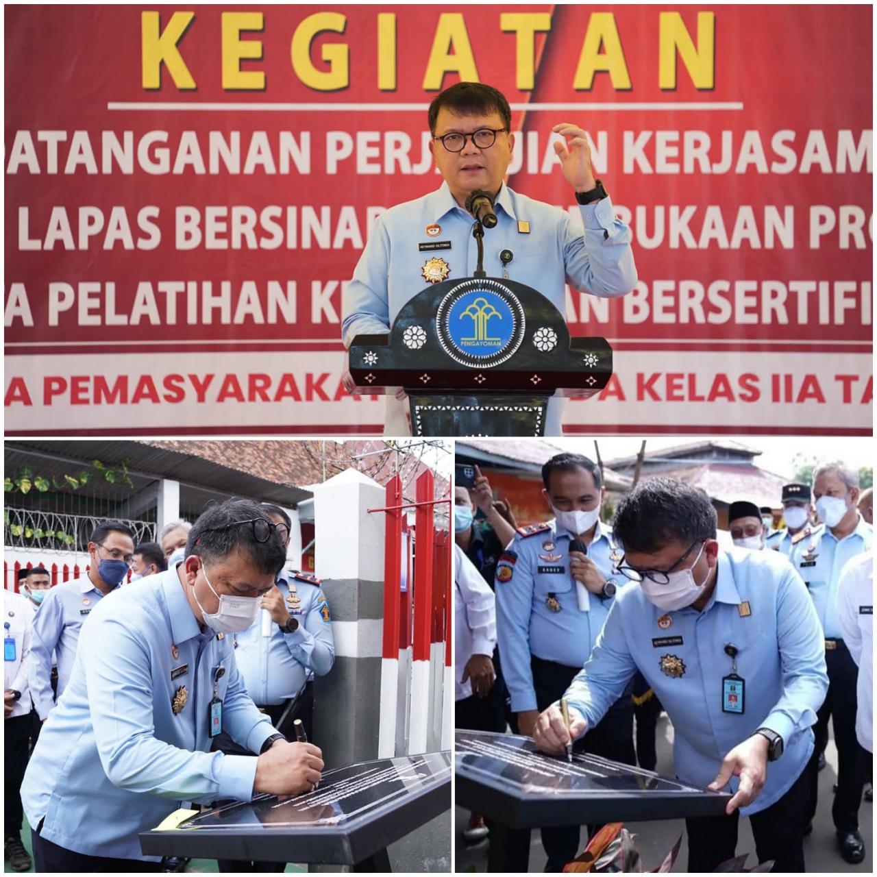 Tangerang (ungkapriau.com) - Pastikan Optimalisasi Pelaksanaan Pembinaan mental spiritual keagamaan bagi warga binaan pemasyarakatan (WBP) berjalan baik, Direktur Jenderal Pemasyarakatan (DirjenPAS) tandatangani perjanjian kerjasama dengan Pengasuh Pesantren Indonesia dan Yayasan Mahanaim Mulia Indonesia, Senin (24/01/2022).