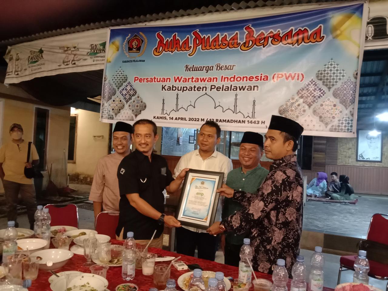 Acara buka bersama PWI Pelalawan ini, diakhiri penyerahan penghargaan kepada PT. EMP yang diterima langsung oleh Hansardi.