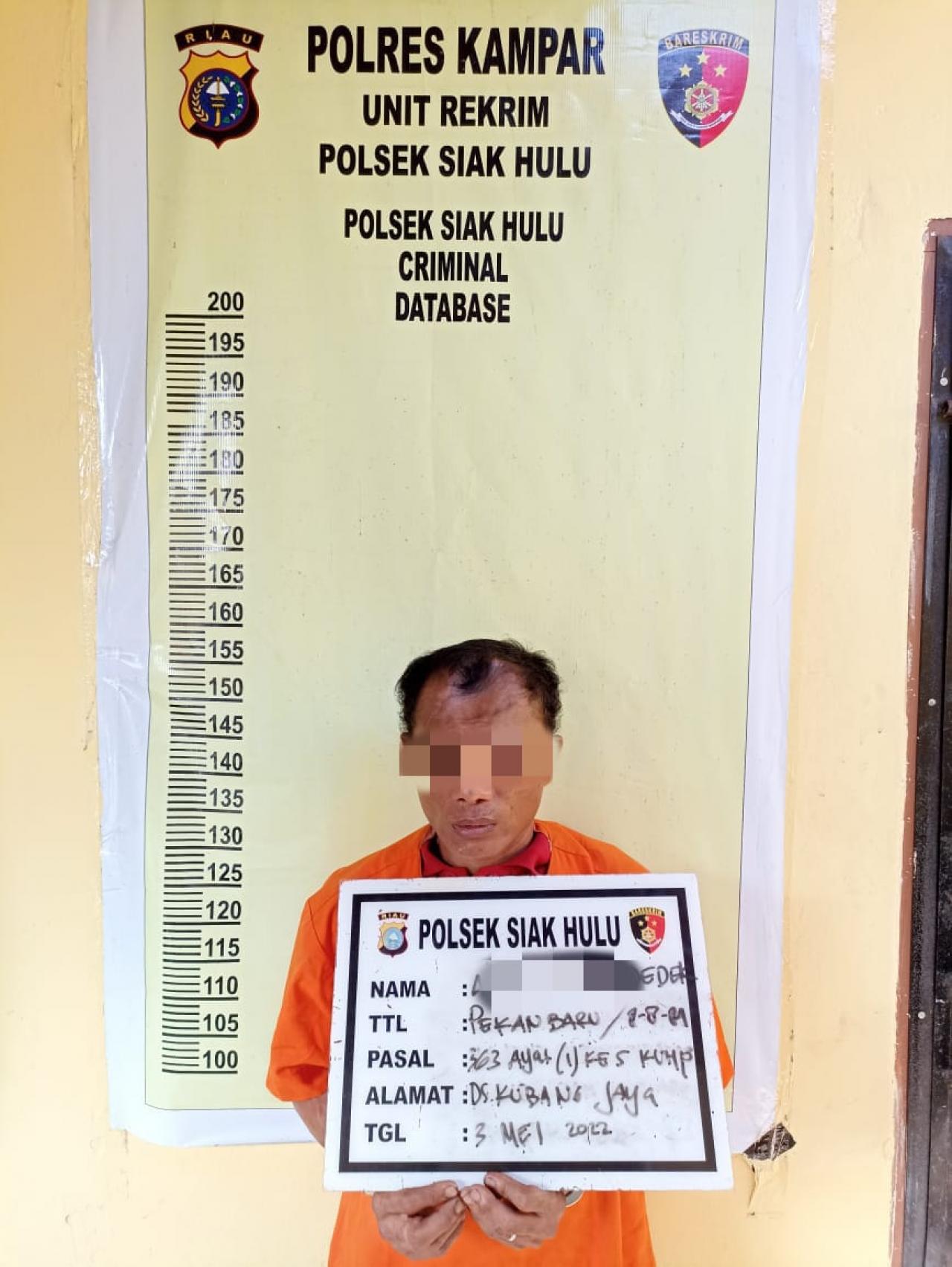 Kejadian ini terjadi di Dusun I Desa Kubang Jaya Kecamatan Siak hulu Kabupaten Kampar. Dengan pelaku AG (37) warga Jalan SMP Desa Kubang Jaya, Kecamatan Siak Hulu, Kabupaten Kampar.