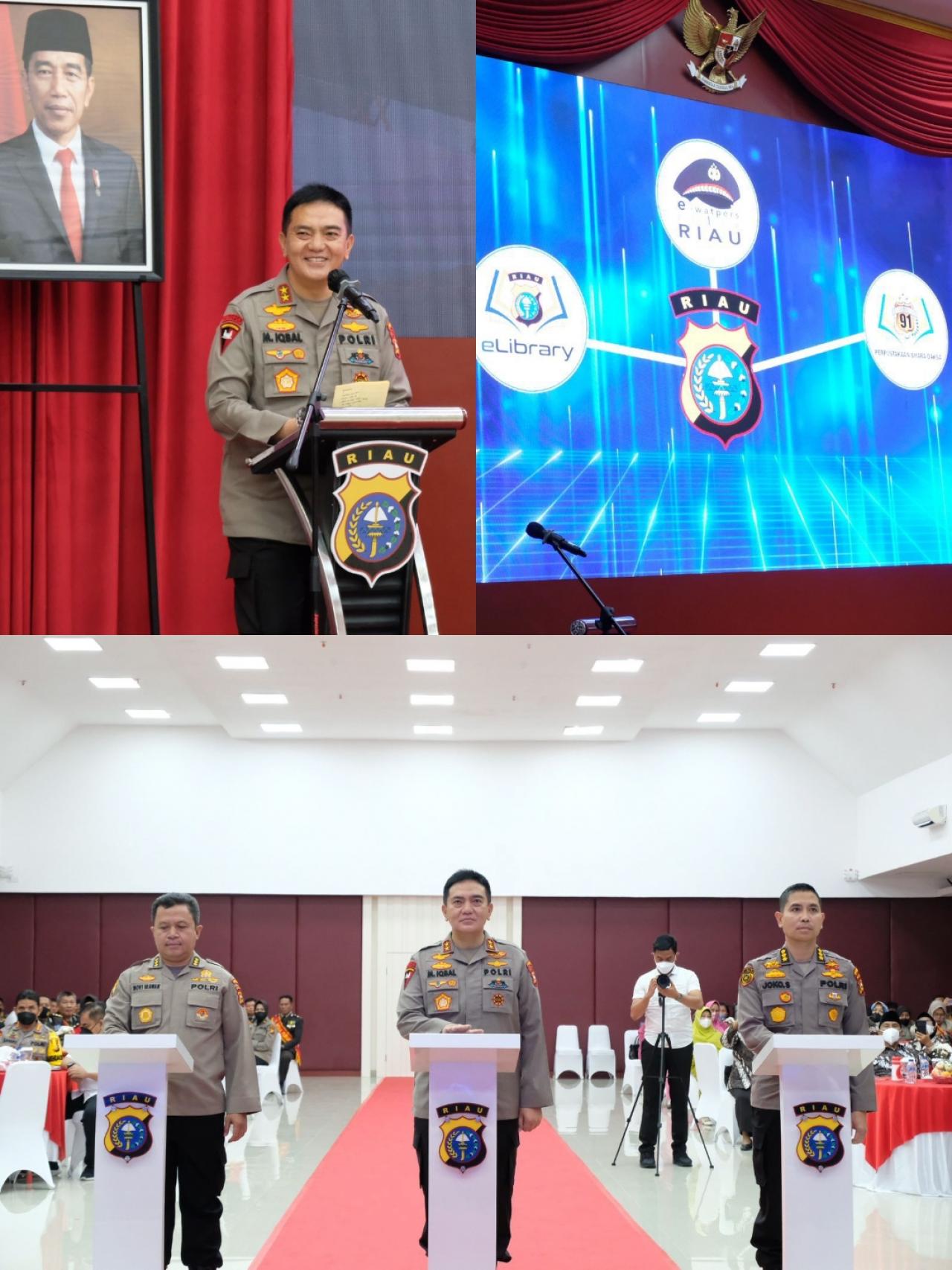 Kombes Joko menerangkan e-library Presisi Polda Riau merupakan aplikasi perpustakaan digital yang memberikan akses kepada penggunanya untuk menjadi pengelola dan anggota perpustakaan.