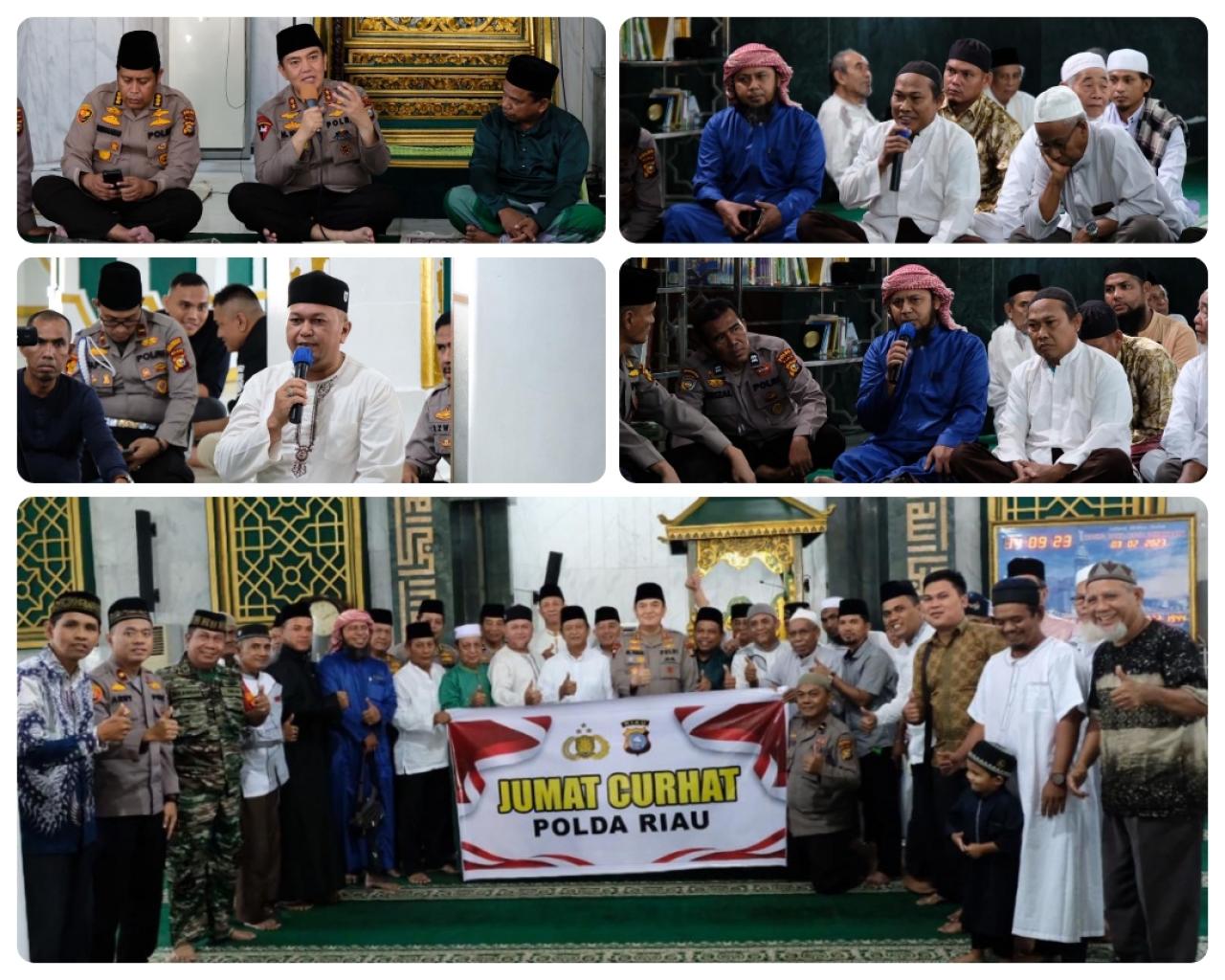 Kapolda Riau, didampingi sejumlah Pejabat Utama (PJU) Polda Riau untuk mendengarkan berbagai curahan hati (Curhat) para Jamaah.
