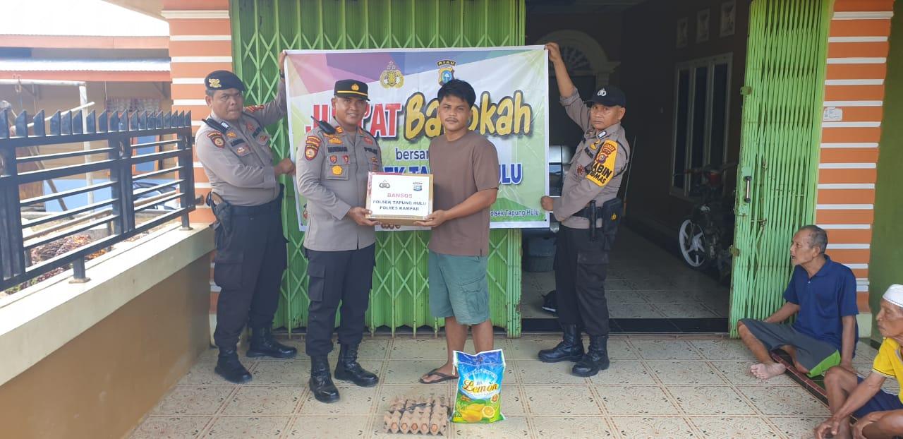 Kampar, Jumat Barokah, Polsek Tapung Hulu kembali melaksanakan kegiatan rutin berbagi bantuan sosial (Bansos) berupa sembako kepada warga kurang mampu di wilayah Desa Sumber Sari, kecamatan Tapung Hulu, kabupaten Kampar, Jumat, (2/6/23), sekira pukul 11.10 WIB.