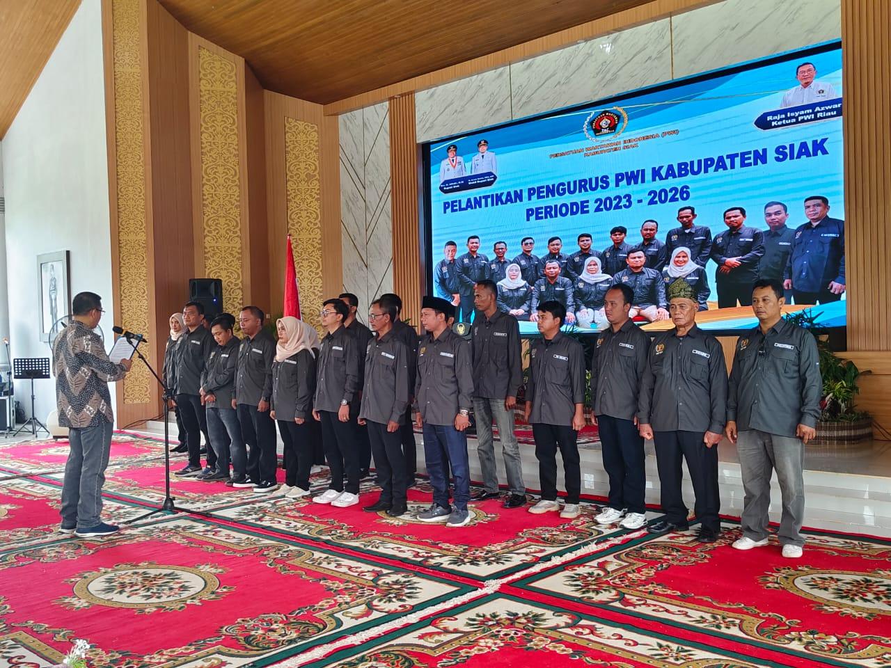 Siak (ungkapriau.com)- Usai pengambilan sumpah jabatan yang dipimpin Ketua PWI Riau Raja Isyam Azwar, Kepengurusan PWI Siak periode 2023-2026 telah resmi dilantik, Selasa (8/5/2024) di Pendopo Datuk Empat Suku, Komplek Perumahan Abdi Praja, Siak Sri Indrapura.
