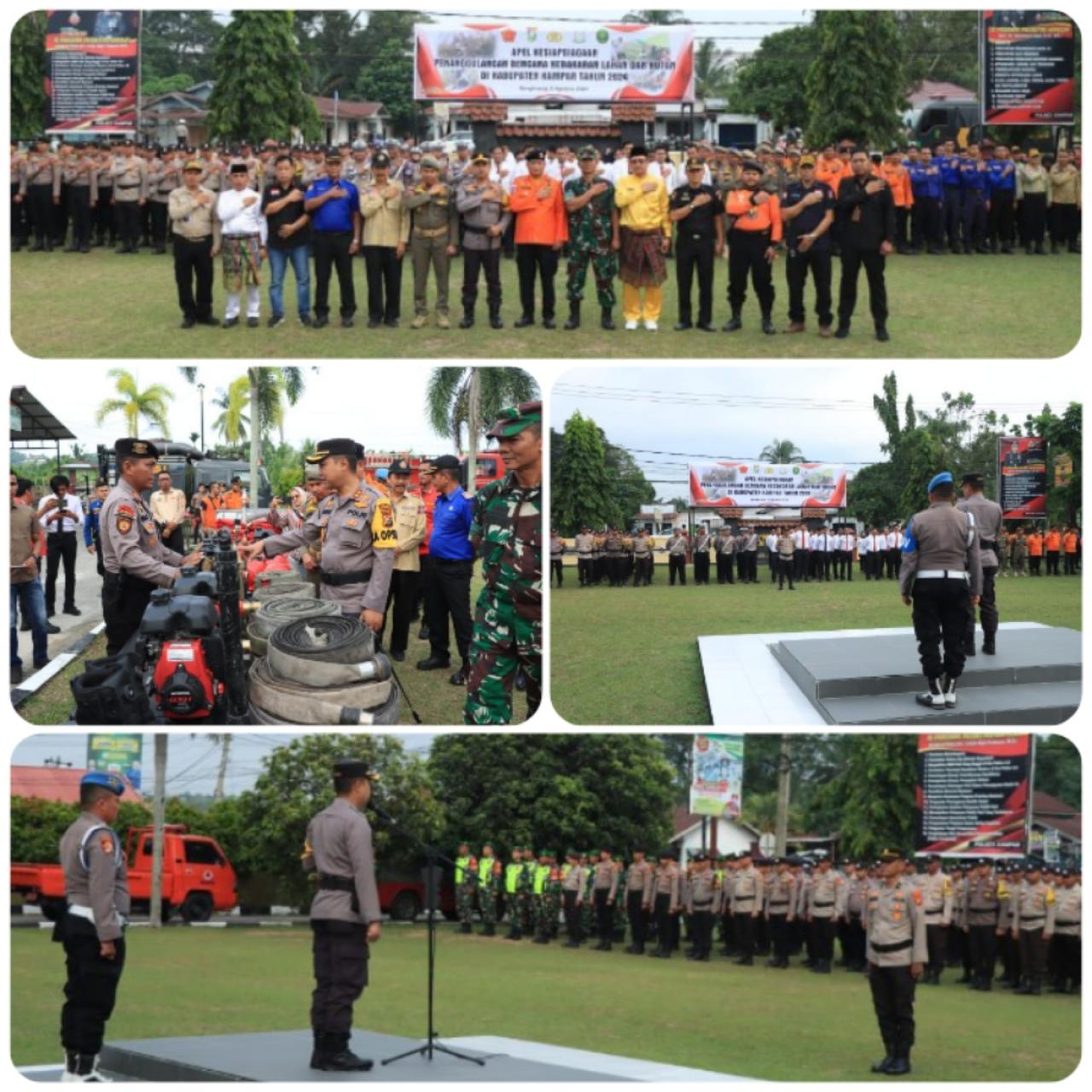 Apel Kesiapsiagaan penanggulangan Bencana Karhutla tahun 2024 di Kabupaten Kampar Kapolres Kampar AKBP Ronald Sumaja Menyampaikan Apel kesiapsiagaan yang diselenggarakan ini dilaksanakan untuk mengecek kesiapan kita dan kelengkapan sarana prasarana dalam menghadapi karhutla di tahun 2024, sehingga diharapkan nantinya semua perencanaan yang telah disiapkan dapat berjalan dengan optimal dan maksimal.