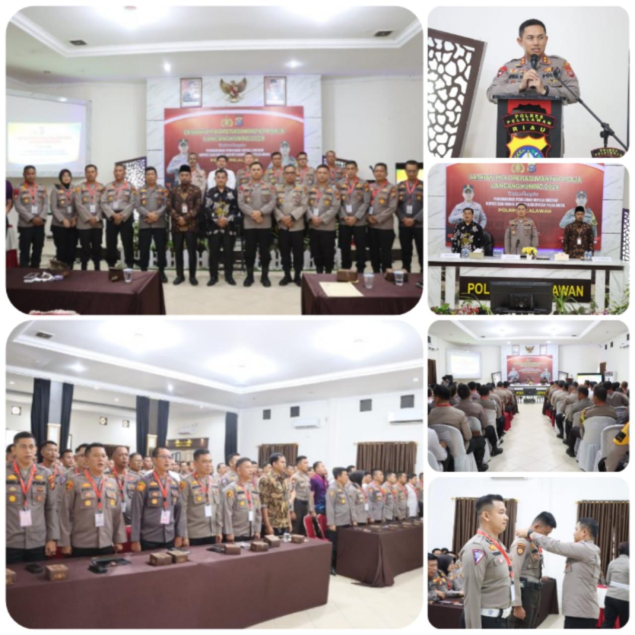 Pembukaan Lat Pra Operasi Mantap Praja Lancang Kuning Tahun 2024 dibuka langsung oleh Kapolres Pelalawan, AKBP Afrizal Asri, S.I.K dengan didampingi oleh Ketua KPU Kabupaten Pelalawan Baprinaldi, S.Sos., Komisioner Penanganan Pelanggaran, Data, dan Informasi BAWASLU Kabupaten Pelalawan Syakir Hamdani.SH, Kabag Ops Polres Pelalawan Kompol Maison.SH, Pejabat Utama, Kapolsek dan seluruh Personil Polres Pelalawan yang terlibat dalam Pengamanan Operasi Mantap Praja tahun 2024.
