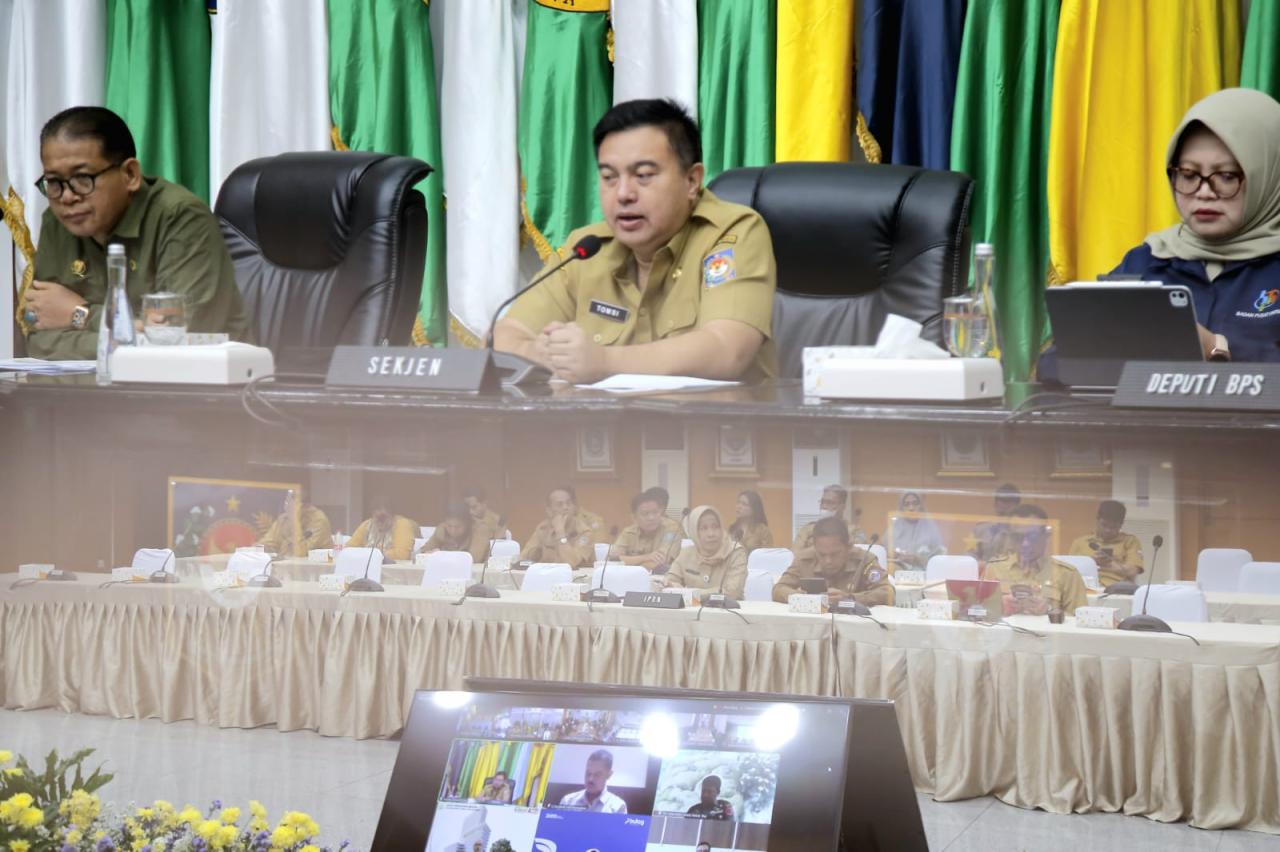Jakarta (ungkapriau.com)- Sekretaris Jenderal (Sekjen) Kementerian Dalam Negeri (Kemendagri) Tomsi Tohir mendorong pemerintah daerah (Pemda) agar menjalin kerja sama dengan daerah penghasil dalam menjaga ketersediaan pangan. Upaya ini juga bertujuan untuk mengendalikan harga pangan. Langkah tersebut penting agar daerah penghasil dapat menyalurkan hasil produksinya, sehingga produsen memperoleh harga yang layak.