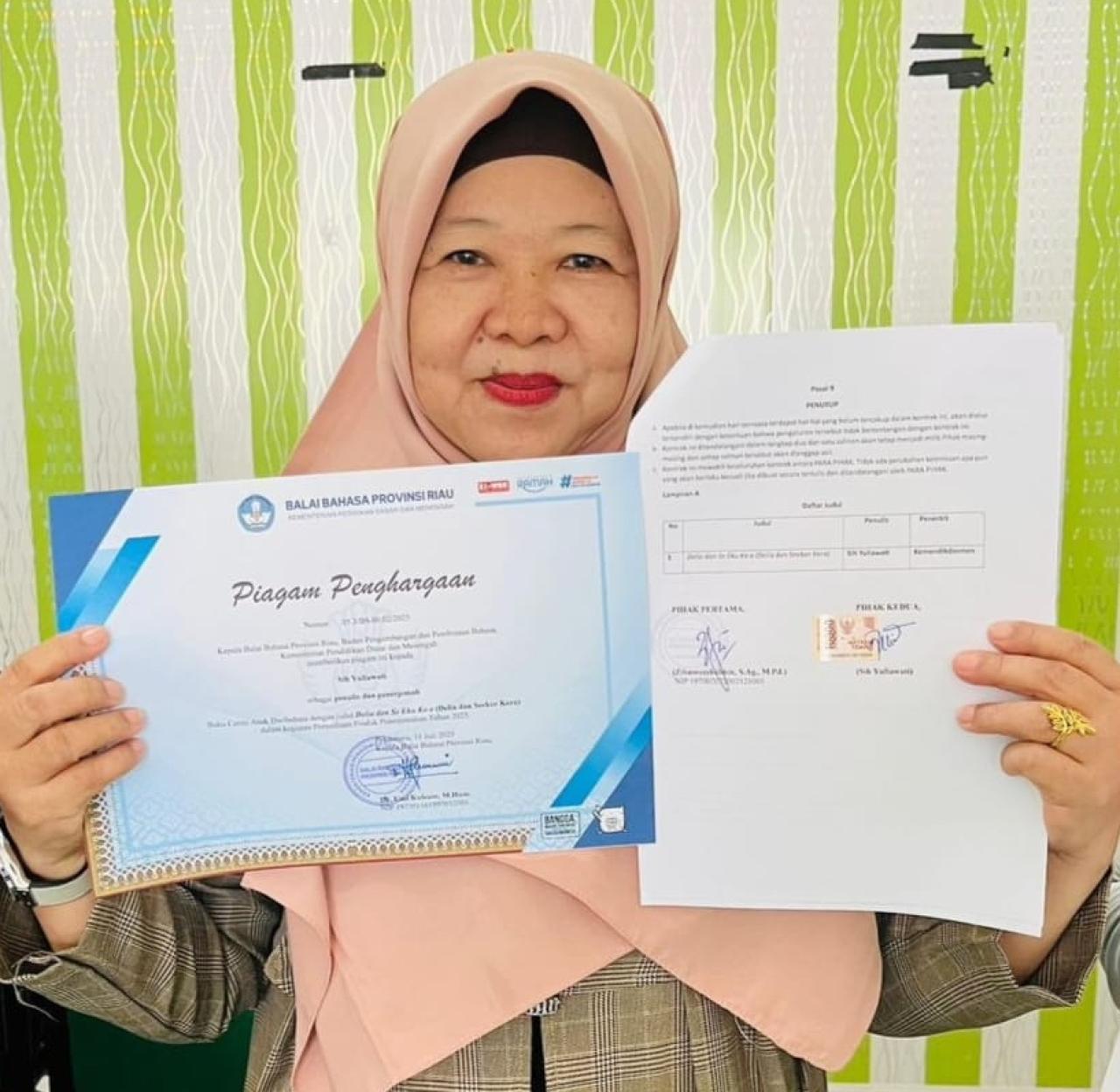Keberhasilan Guru SDN 006 sebagai penulis dan penerjemah cerita anak Dwi Bahasa dari Kepala Balai Bahasa Provinsi Riau, Badan Pengembangan dan Pembinaan Bahasa. Aka terus membawa nama Dinas Pendidikan Pelalawan dalam catatan sejarah baru di kanca nasional.