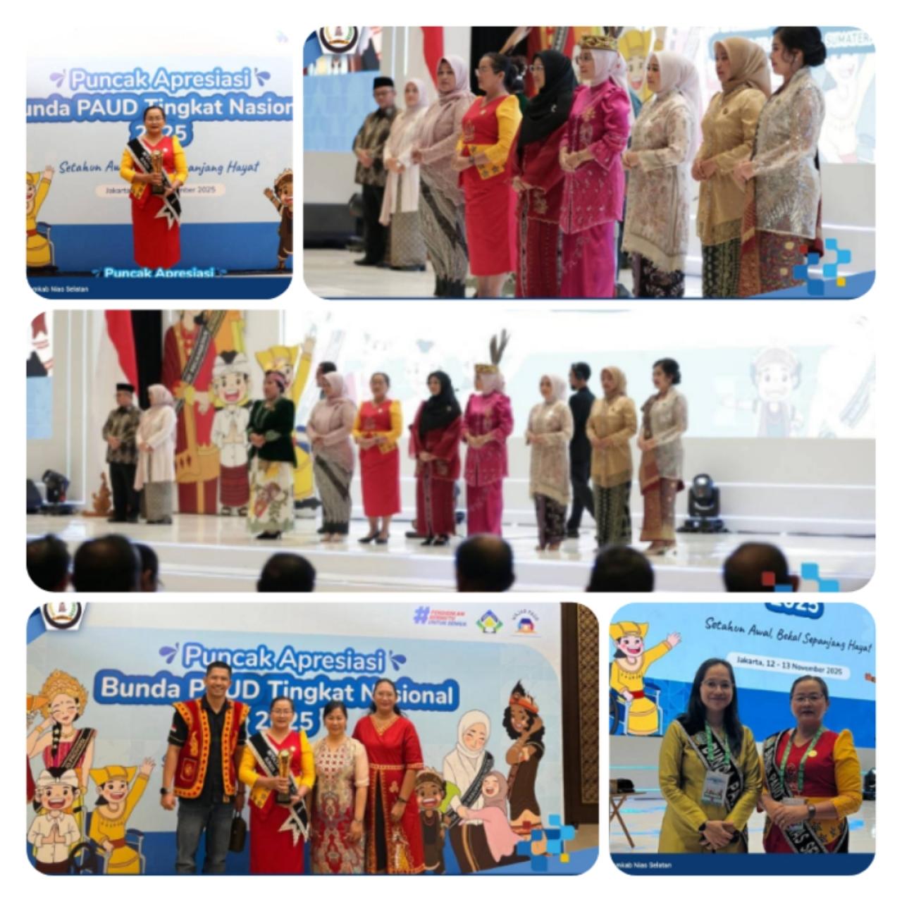 Nias Selatan (ungkapriau.com)- Bunda PAUD Kabupaten Nias Selatan, Militina Sokhiatulo Laia, meraih Penghargaan Apresiasi Bunda PAUD Tingkat Nasional yang diserahkan langsung oleh Bunda PAUD Nasional Selvi Gibran Rakabuming Raka pada puncak Apresiasi Bunda PAUD se-Indonesia, di Hotel Sultan Jakarta, Kamis (13/11/2025).