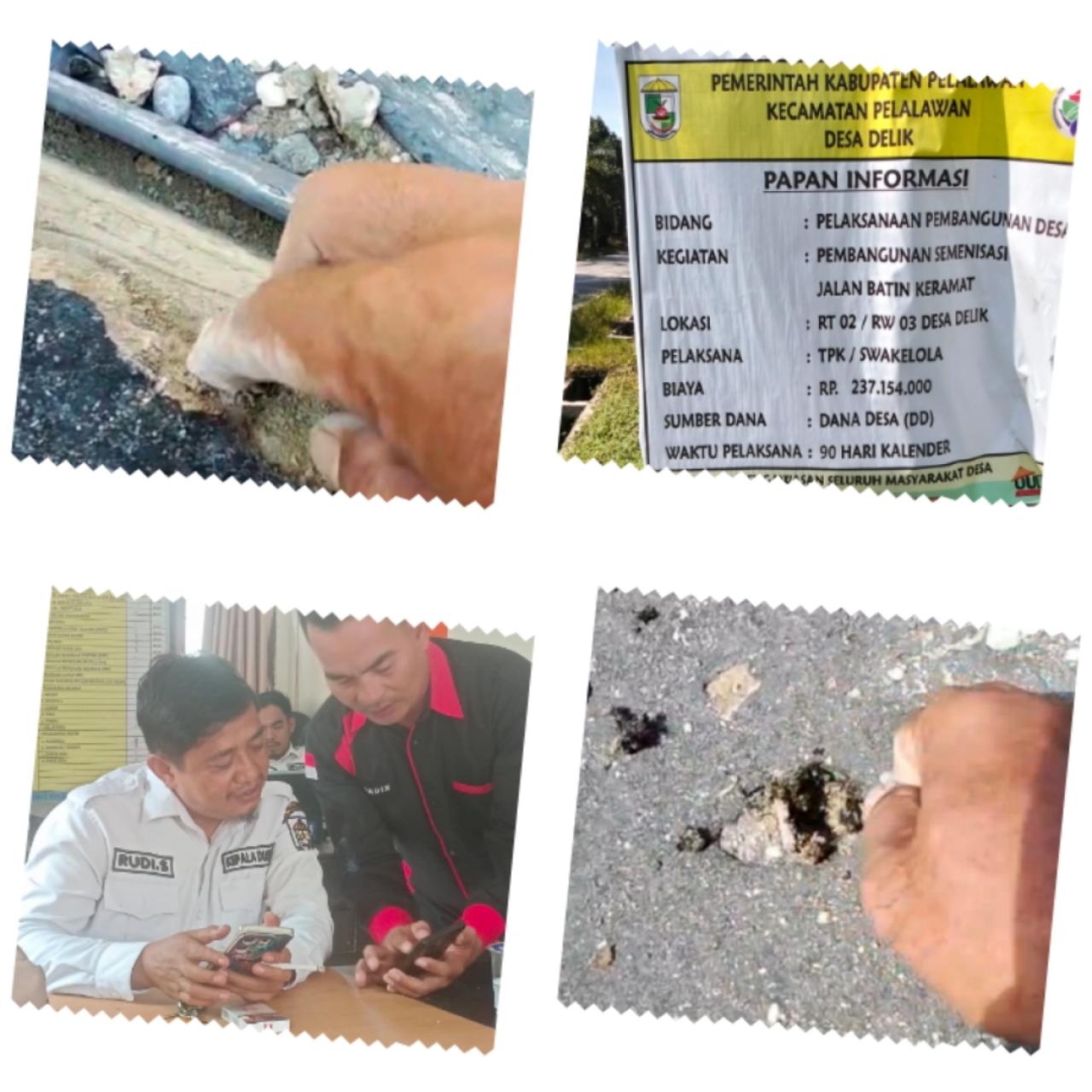 Salah satu contoh, pembangunan Jalan Simenisasi yang di Dusun III Jalan Batin Kremat RT 02/RW 03 di Pangkalan Delik, Desa Delik Kecamatan Pelalawan-Riau. Pekerjaan tersebut dilaksanakan Tahun Anggaran 2025 dengan nilai Anggaran sebesar Rp. 237,154,000,00-.