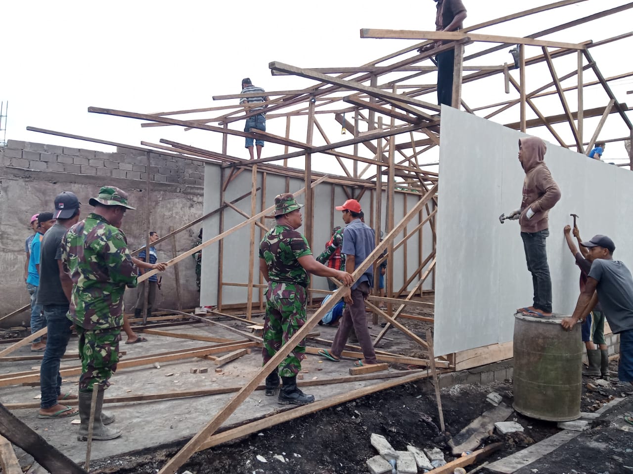 Kapten Arh Sugiyono Goro Bersama Masyarakat Membangun Rumah Korban Kebakaran |